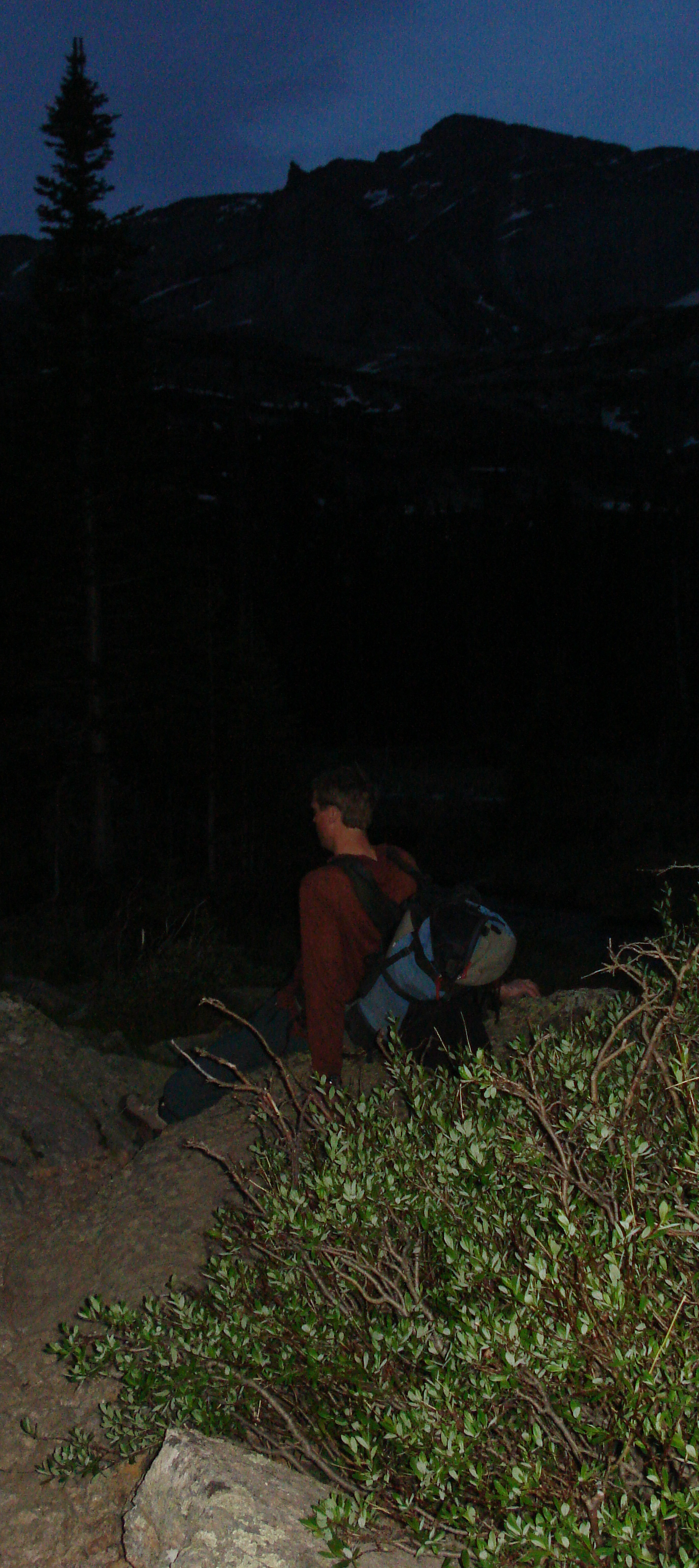 We arrived at the Glacier Gorge parking lot at 4am and started up the dark, windy trail. There were a few cars in the lot, but we had the trails to ourselves.