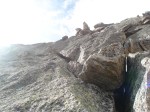 I continued up the ridge until I reached a ledge below a short crack. The rope was starting to feel heavy and my Achilles was demanding a sit-down rest. I took it.