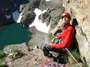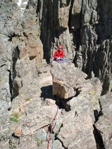 Ah, The Petit.  It was the second rock climb I ever did in RMNP (07/04/1993), back when I lived in the Flatlands and dreamed for 12 months at a time for my next high peaks adventure. I climbed the Petit with my Chicagoland friends, Mark & Jim (summit photo lost to the Ages) after a high altitude bivy beneath the stars .  It was a scary, wonderful experience that weighed heavily on my decision three years later to move to Colorado.