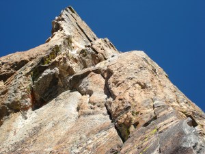 It was approximately Noon, so we had taken 6 hours to do 8 pitches.  Not bad, but 6 hours is a long time in the high country without a drink of water.  We couldn’t stay long, and didn’t try.
