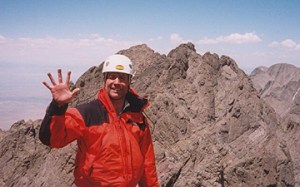 Joe (me) on Arrowhead summit with McHenrys NE Arete in background