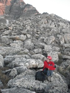 Ypsilon summit: enjoying our first break after 10 hours of hiking and climbing