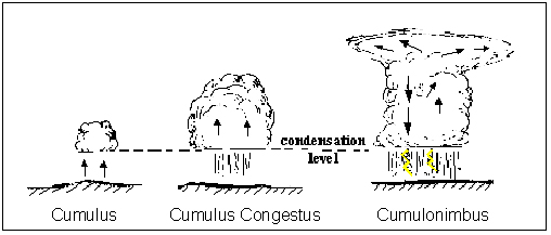 So how to we tell if a thunderstorm may develop to threaten us? To answer this question, we breakdown the situation into three phases which can provide clues: (1) the unstable air conditions that allow thunderstorms to develop, (2) the early signs of thunderstorm development, & (3) late signs of thunderstorm development.