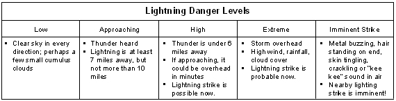 (5) NOLS: National Outdoor Leadership School, Backcountry Lightning Safety Guidelines (www.nols.edu/resources/research/pdfs/lightningsafetyguideline.pdf)
