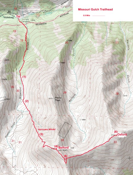 Brian and I had hiked past the full length of Columbia two years prior when we climbed Mt. Harvard via its South Ridge starting from the N. Cottonwood Creek trailhead; we felt we knew the area well enough to skip a full-on planning effort to climb Columbia’s West Flank and South Ridge. We were right to be confident that the two of us could figure out a way.