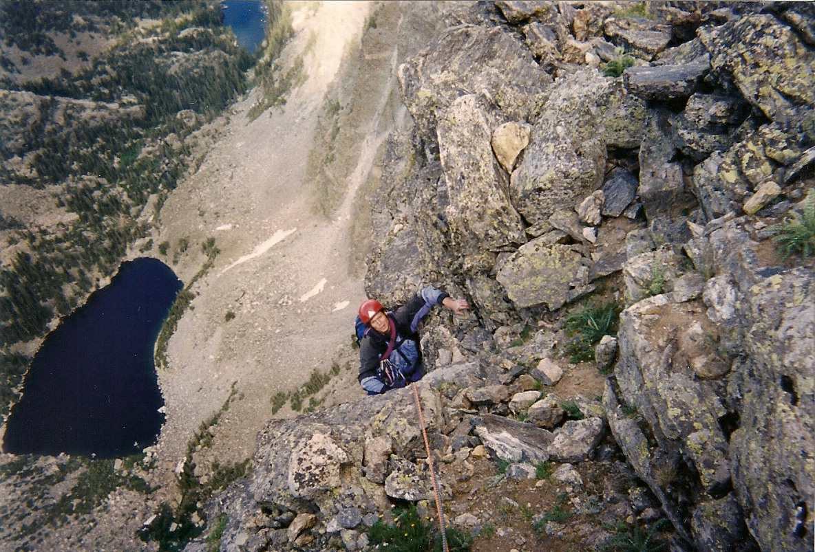 A photo I took of Brian at Rainbow Curve in 2012, with Ypsilon and Fairchild mountains in the background.